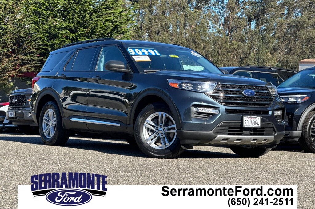 Certified. ***DEALER SERVICE***, ***BALANCE OF FACTORY WARRANTY***, ***BACKUP CAMERA & BLUETOOTH***, ***LANE-KEEPING SYS./ALERT***, ***POWER LOCKS, WINDOWS, MIRRORS***, ***BLIND SPOT MONITOR***, ***ONE OWNER***, ***HEATED ACTIVEX SEATS***, ***8" TOUCHSCREEN W/APPLINK**, ***3RD ROW 50/50 FLAT FOLD SEATS***, ***REAR PARK ASSIST***, ***POWER FRONT SEATS***, ***SIRIUSXM***, **HEADLAMPS-AUTO LED W/LED SIGNATURE LIGHTING**, 2.3L EcoBoost I-4, Ebony w/ActiveX Captain's Chairs. Odometer is 4949 miles below market average! CARFAX One-Owner. 21/28 City/Highway MPG Stone Blue Metallic 2022 Ford Explorer XLT RWD 10-Speed Automatic 2.3L EcoBoost I-4