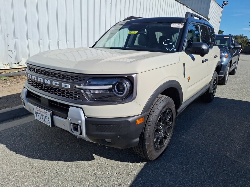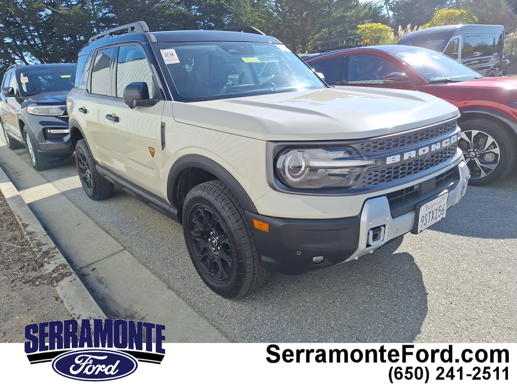 Recent Arrival! Certified. Clean CARFAX. ***BALANCE OF FACTORY WARRANTY***, ***BACKUP CAMERA & BLUETOOTH***, ***FRONT AND REAR PARK ASSIST***, ***AUTO START STOP TECH.***, ***POWER LOCKS, WINDOWS, MIRRORS***, ***PRIOR RENTAL***, ***CLEAN CARFAX***, ***HEATED LEATHER TRIM SEATS***, ***POWER FRONT SEATS***, ***13.2" TOUCHSCREEN***, ***360 DEGREE CAMERA***, ***SIRIUSXM***, **REAR BRAKE ASSIST**, **HEADLAMPS-AUTO LED AUTO HIGH BEAM W/SIGNATURE LED LIGHTING**, **WIRELESS PHONE CHARGING**, Bronco Sport Badlands, 4WD, Desert Sand, Dark Space Gray w/Leather Trimmed Front Bucket Seats. CARFAX One-Owner. 21/27 City/Highway MPG Desert Sand 2025 Ford Bronco Sport Badlands 4WD 8-Speed Automatic EcoBoost 2.0L I4 GTDi DOHC Turbocharged VCT