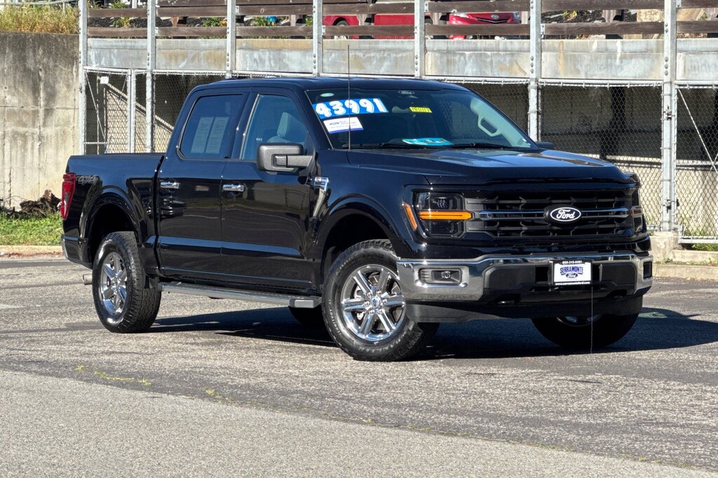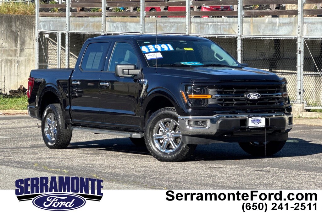 Recent Arrival! Certified. New Price! Clean CARFAX. ***BALANCE OF FACTORY WARRANTY***, ***BACKUP CAMERA & BLUETOOTH***, ***PRE-COLLISION SYSTEM***, ***LANE-KEEPING SYS./ALERT***, ***POWER LOCKS, WINDOWS, MIRRORS***, ***PRIOR RENTAL***, ***BLIND SPOT MONITOR***, ***CLEAN CARFAX***, ***12" TOUCHSCREEN***, ***REAR SENSING SYS. W/REAR BRAKE ASSIST***, ***POWER DRIVER SEAT***, **6" ANGULAR ATEP BARS**, **POST-COLLISION BRAKING**, **AUTO HOLD TECH.**, **HEADLIGHTS- LED AUTO ON/OFF AUTO HIGH BEAM**, 4WD. CARFAX One-Owner. Agate Black Metallic 2025 Ford F-150 XLT 4WD 10-Speed Automatic 2.7L V6 EcoBoost