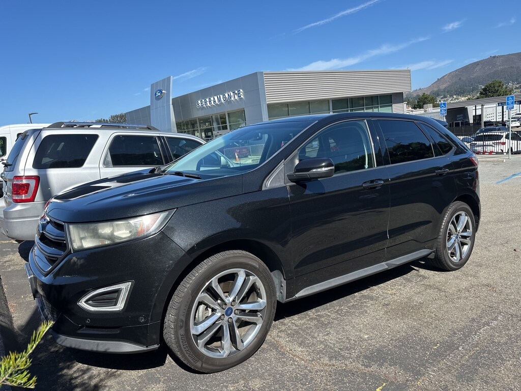 Recent Arrival! New Price! ***HEATED/ COOLED LEATHER SEATS***, ***8" TOUCHSCREEN NAVIGATION SYSTEM***, ***DEALER SERVICE***, ***BACKUP CAMERA & BLUETOOTH***, ***180 DEGREE FRONT CAMERA***, ***SONY PREM. SOUND W/12 SPKR.***, ***LANE-KEEPING SYS./ALERT***, ***POWER FRONT SEATS W/ MEMORY***, ***POWER LOCKS, WINDOWS, MIRRORS***, ***BLIND SPOT MONITOR***, ***CLEAN CARFAX***, ***PANORAMIC VISTA ROOF***, ***REAR PARK ASSIST***, ***WELL MAINTAINED W/(15) SERVICE HISTORY RECORD***, ***SIRIUSXM***, ENHANCED ACIVE PARK ASSIST**, **HEATED REAR SEATS**, **LED SIGNATURE LIGHTING**, Edge Sport, 2.7L V6 EcoBoost, AWD, Tuxedo Black Metallic, Ebony w/Leather-Trimmed Heated Sport Bucket Seats. Odometer is 938 miles below market average! Tuxedo Black Metallic 2015 Ford Edge Sport AWD 6-Speed Automatic 2.7L V6 EcoBoost